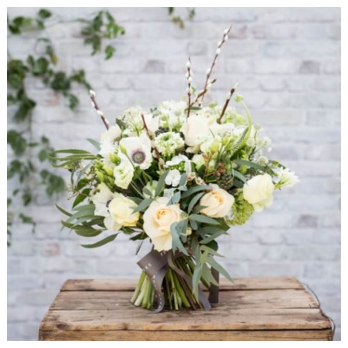 An elegant and sophisticated design in fresh white and green, with a whispered hint of colour. Each arrangement is composed of seasonal flowers and foliage, hand-picked for their beauty and refinement. No two designs are ever identical—the content varies according to the freshest stems available on the day of your delivery, ensuring a bouquet that is as unique as it is timeless. This bouquet is quiet simply – Stylish !