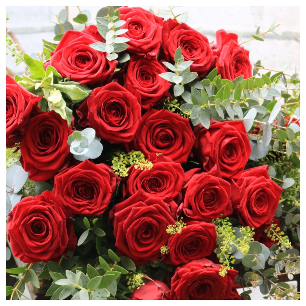 Adding an extra touch of luxury, and when a dozen roses isn’t enough! Gorgeous, rich, red long-stem roses are combined with beautiful foliage.